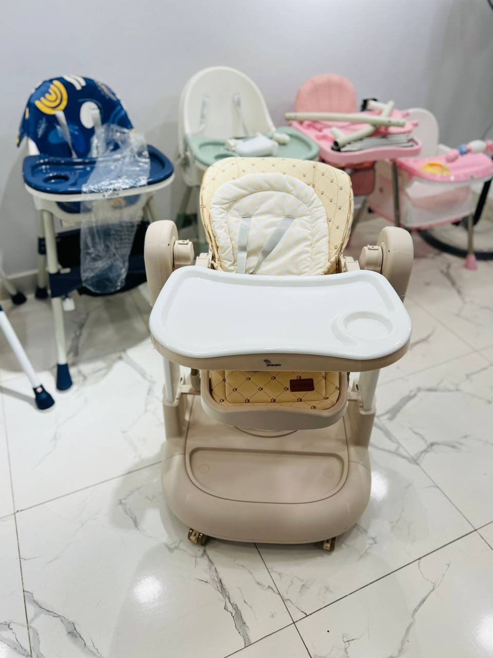 مشاية و مرجيحة وكرسي طعام في مكان واحد